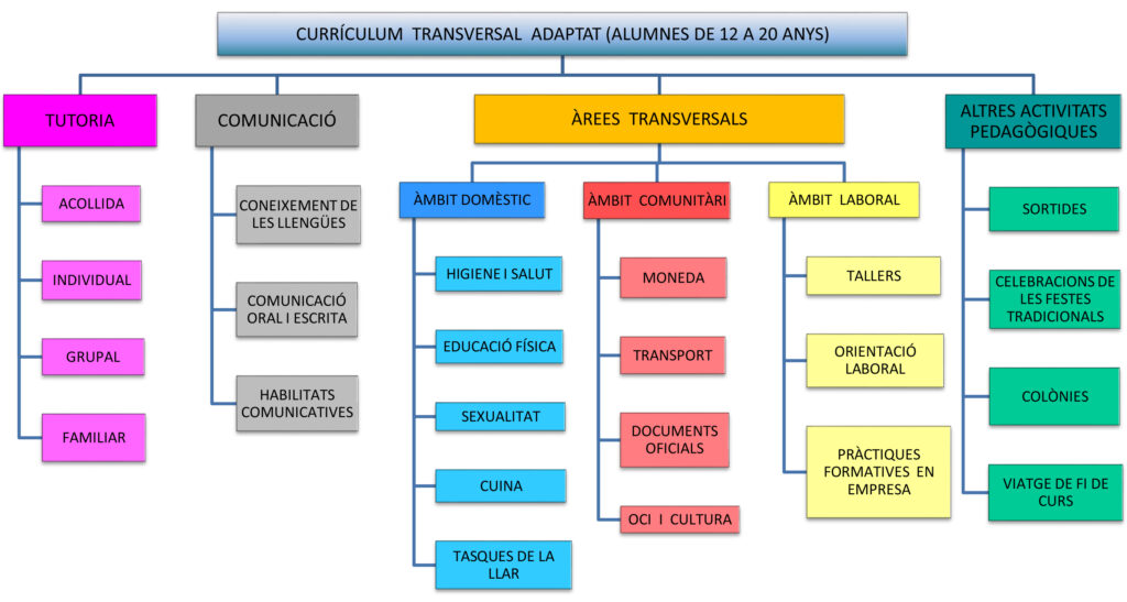 El nostre Projecte Curricular és una adaptació del currículum de l’E.S.O. Sobre aquesta base hem fet les modificacions necessàries per tal d’adaptar-lo a les necessitats funcionals de la vida quotidiana dels nostres alumnes. La nostra escola és un centre que està obert al seu entorn i una part important de la formació s’adquireix fora de l’edifici. Els nostres alumnes, sovint han de desenvolupar les activitats d’aprenentatge en els entorns reals. Per això és habitual trobar-los realitzant compres, fent gestions en organismes oficials o utilitzant els diferents transports públics.